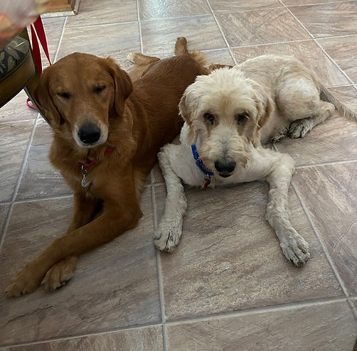 We are Nala...a five year old petite Golden Retriever and Lulu also 5 years old and a very petite Golden Doodle. We went straight to the vet. Lulu's skin is kind of a "mess". But getting better every day. We both did have kind of yucky ears, but the vet is taking care of that, as well. We have spent our lives with lots of children...of all ages. We're gentle and sweet, quiet, and soooo kind. We rarely leave each other's side. We're ZERO maintenance. Just easy and loving. We'd really love to find a foster home (or eventually a forever home...together). It would mean the would to everyone at GRSF, to find a loving home where we can get healthy and happy and to be safe. And maybe turn our world back from upside down.